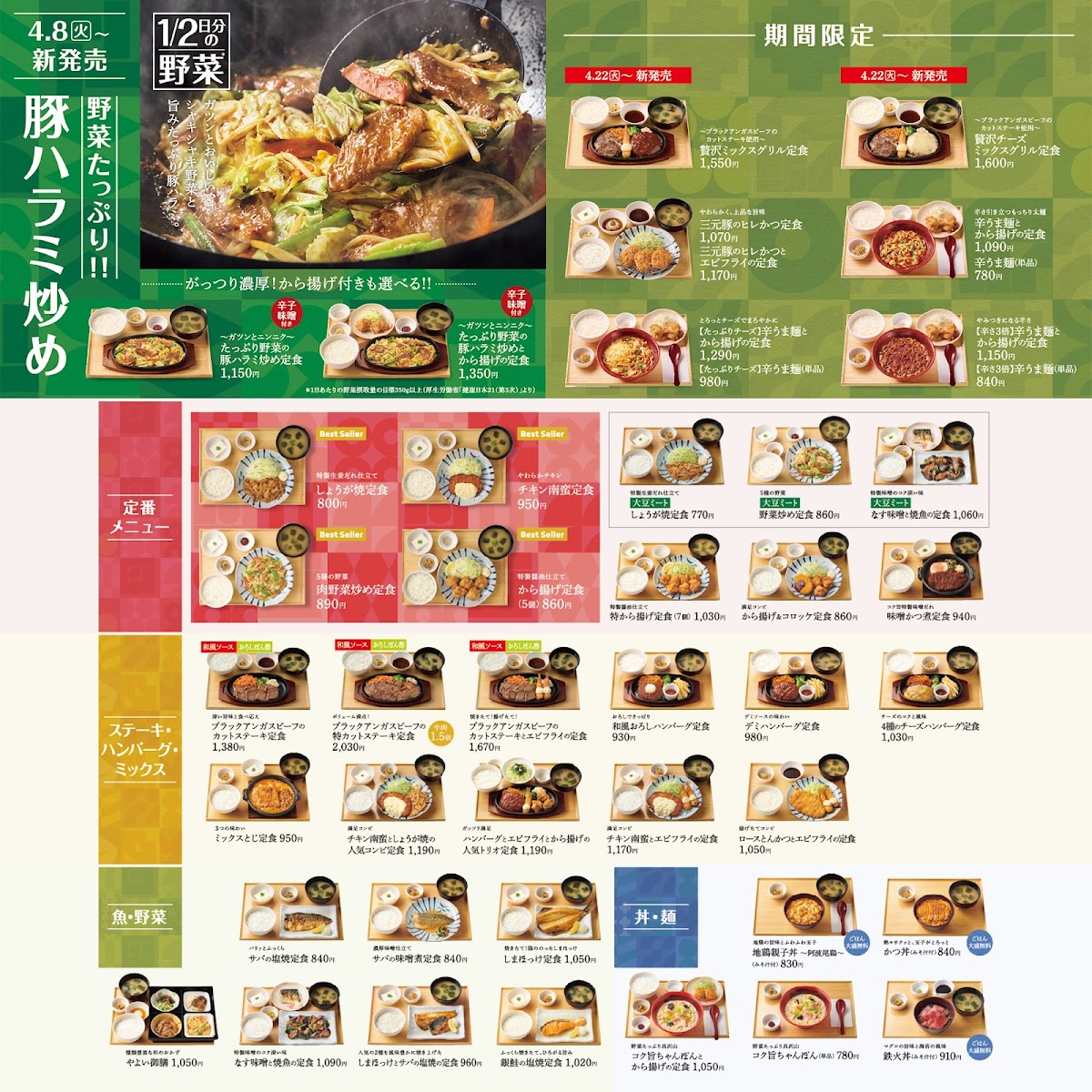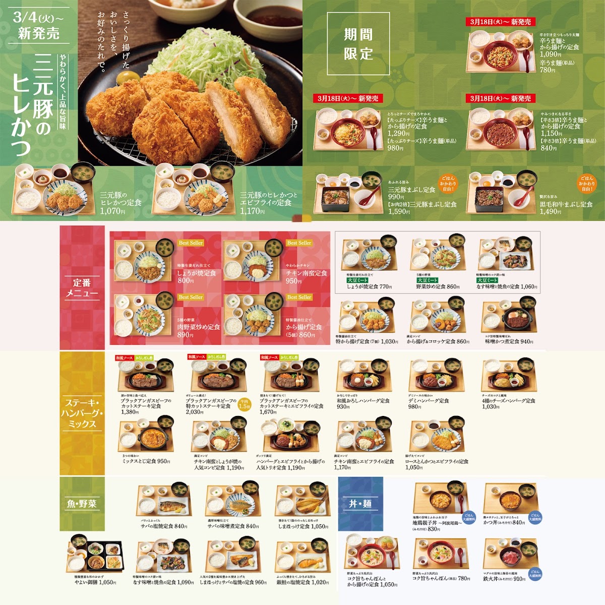 Yayoi Karatsu Restaurant, located at 1767 Choda, Karatsu, Saga 847-0821, Japan, offers a delightful menu that combines traditional Japanese flavors with a modern touch. One of their best sellers is the Shōga-yaki Teishoku (しょうが焼定食), a savory ginger pork dish that perfectly balances sweet and spicy flavors, making it a popular choice among patrons. This dish is served with a well-rounded set meal, typically including rice, miso soup, and side dishes, all for ¥1,100.